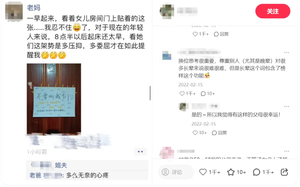 晚上8点的父母——好困,我要睡觉了。