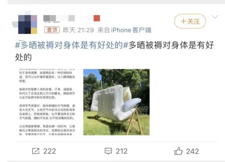 这几天,有一个“多晒被子对身体是有好处的”的话题冲上热搜,很多网友表示,住在高层小区,没地方晒,怀念小时候晒完的被子味道。