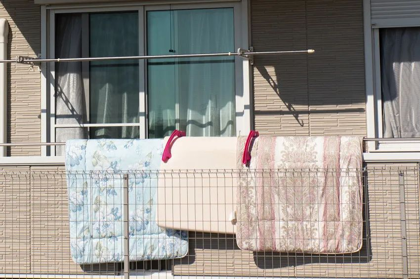 很多人晒被子都是裸晒,其实可以在被子上加一层旧的床单,这样既能避免因强光照射导致面料变黄褪色,又能挡住灰尘、花粉等落在被褥上。